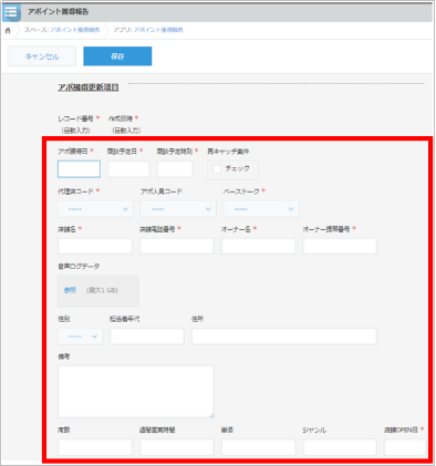 ◆⑤Kintoneで必要情報の入力、及び、音声ログアップロード