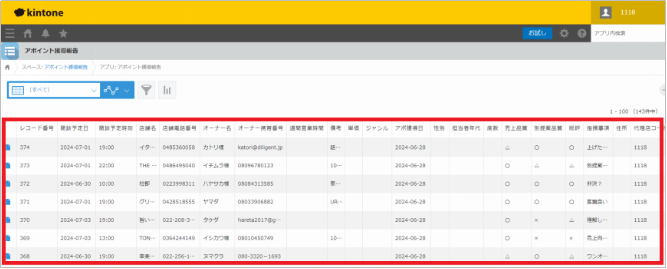 ③報告済みアポ一覧が表示されるので、こちらで当日の部署受注件数と送付数をチェック