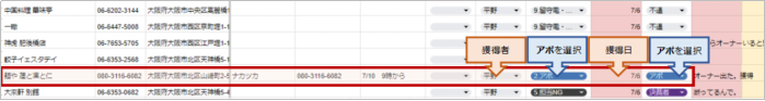 ◆①架電リストの担当者・ステータス・架電日①②③・日報①②③を入力する